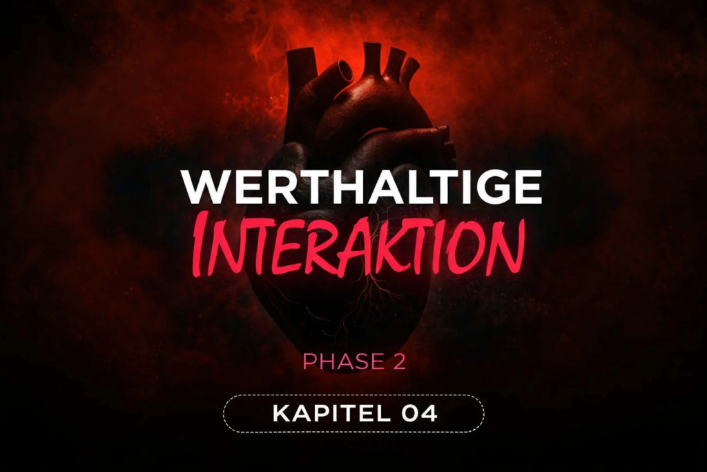 In Phase 2 werden Dialogfähigkeiten und Techniken behandelt, um tiefe emotionale Verbindungen zu schaffen, deinen hohen Wert zu vermitteln und innere Bindungen jenseits der Oberflächlichkeit aufzubauen.
